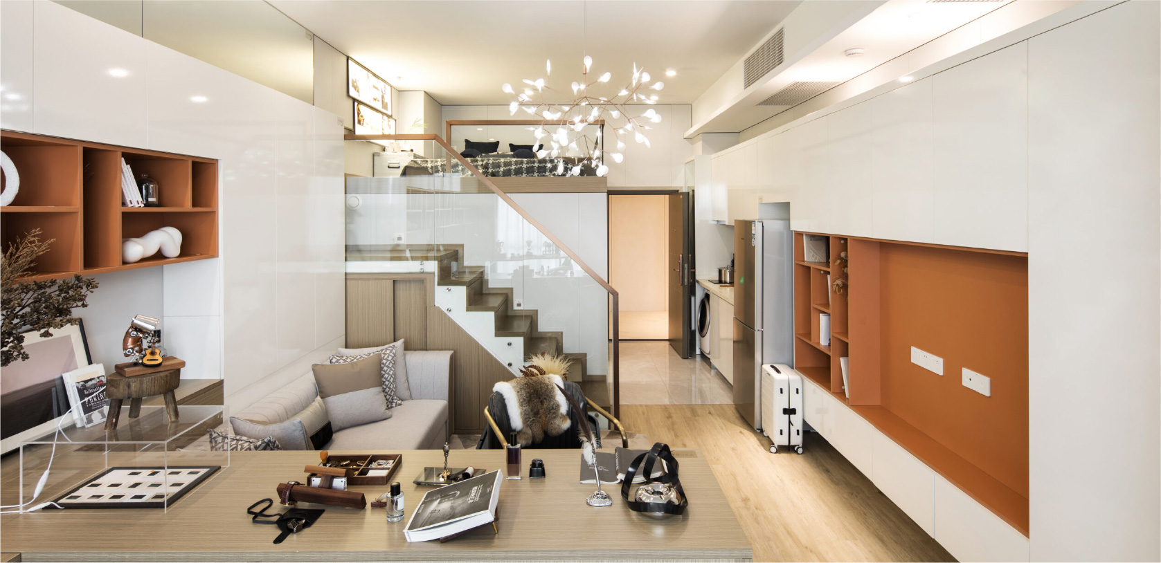 本项目应用亚厦全工业化装修体系,打造了集健康、品质、美学为一体的居住空间,顶面应用的亚厦装配式吊顶产品,为Loft公寓户型节省了近3%的层高使用空间,所有装配式产品均由工厂统一生产,现场实现均质化的干法施工。
