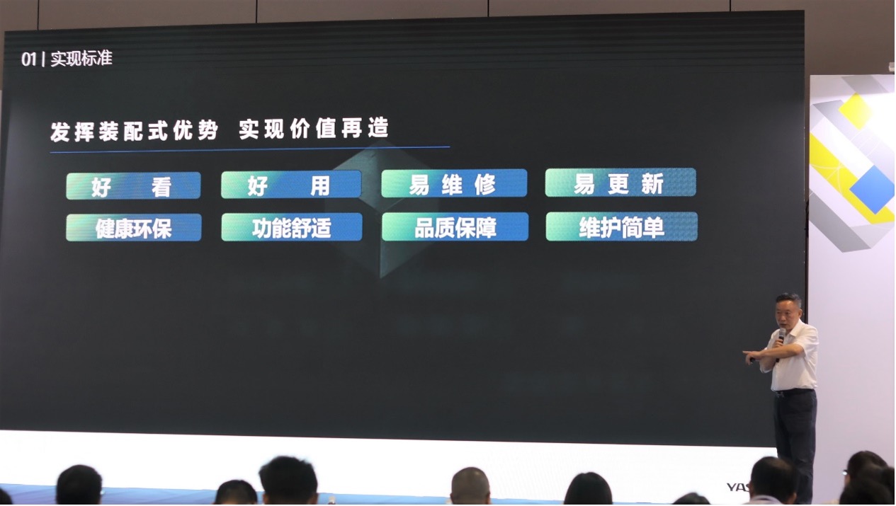 亚厦联席总裁兼建筑装饰工业化董事长王文广受邀出席,发表了《好产品、好过程、好结果 交付是最好的验证》主题报告,细致分享了装配式装修的产品应用技术与项目施工落地经验等内容。