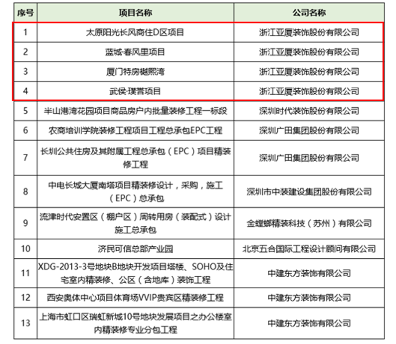 诸多荣誉的背后是整个行业对亚厦多年来在装配式装修领域技术实力、创新能力、专业水平、发展前景等综合发展实力的认可与肯定。