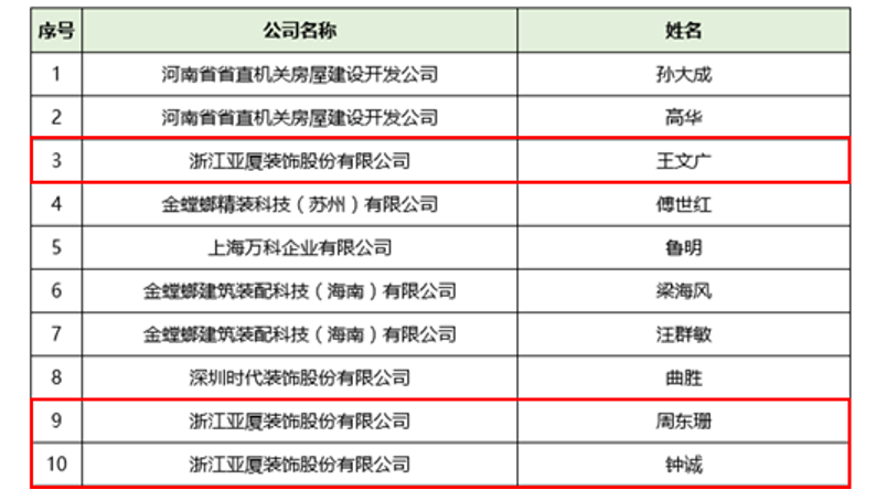 同时,晚宴现场还公布了第一批CBDA装配化装修专家名单,并为第一批CBDA装配化装修专家举办了隆重的受聘仪式,亚厦多人荣誉入选。